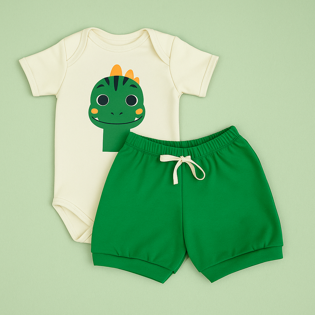 Conjunto Curto Verão Estampas Bichinhos Para Bebês - Até 12 meses