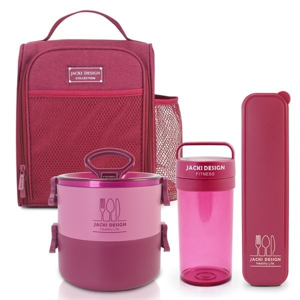 Bolsa Térmica C/ Bolsos - Joy: A bolsa térmica da coleção JOY, foi criada pensando em oferecer mais praticidade e estilo para o consumidor moderno! A bolsa térmica é feita multicamadas e folha de alumínio para manter seu alimento fresco e conservado. Possui fecho em zíper, bolso externo para garrafa e alça de mão. É ideal para levar ao trabalho, academia ou viagens. Conheça a linha completa da coleção JOY e complete o seu kit! CUIDADOS GERAIS: Limpe a bolsa térmica com um pano úmido. Caso necessário, use sabão neutro ou álcool para higienizar o local. Deixe secar na sombra. ATENÇÃO: Para preservar a vida útil do produto, recomendamos não deixar a bolsa de molho, não levar a máquina de lavar e também não utilizar produtos químicos. Medidas: Comprimento: 19cm x Largura: 13cm x Altura: 24cm Porta Talheres Portátil: O Porta Talheres da Jacki Design é um item essencial para transportar com higiene e segurança seus talheres. Feita de material Polipropileno, ele é compacto e fácil de limpar. Conheça a linha completa da coleção JOY e complete o seu kit! Medidas: Comprimento: 25cm x Largura: 6cm x Altura: 3cm Pote Marmita de 2 andares 1600 ml: Agora ficou mais fácil organizar seus alimentos para um dia longo. A marmita de 1400 ml possui 2 recipientes que encaixa um em cima do outro, acompanha garfo e é prático e simples. Feito de material polipropileno, é resistente e possui tampa com travas para segurança evitando acidentes. Produto livre de BPA com qualidade Jacki Design. Conheça a linha completa da coleção JOY e complete o seu kit! (INSTRUÇÕES DE USO: Retire a tampa antes de levar ao micro-ondas; usar somente para aquecer comida, não para cozinhar; Vai ao freezer e lava-louças; Temperatura de uso: -20°C ~120°C; Limpe usando uma esponja macia e detergente.) Medidas: Comprimento: 16cm x Largura: 14cm x Altura: 14cm Garrafa 430 ml: O copo transparente de 430 ml é ideal para levar água, suco ou chá para o escritório ou escola. Possui um filtro infusor, fecho colorido e alça de mão. É leve e fácil de carregar. Produto com qualidade Jacki Design. Conheça a linha completa da coleção JOY e complete o seu kit! (INSTRUÇÕES DE USO: Não vai ao micro-ondas ou lava-louças; Temperatura de uso: -20°C ~80°C; Limpe usando uma esponja macia e detergente). Medidas: Comprimento: 7.5cm x Largura: 7.5cm x Altura: 17.5cm