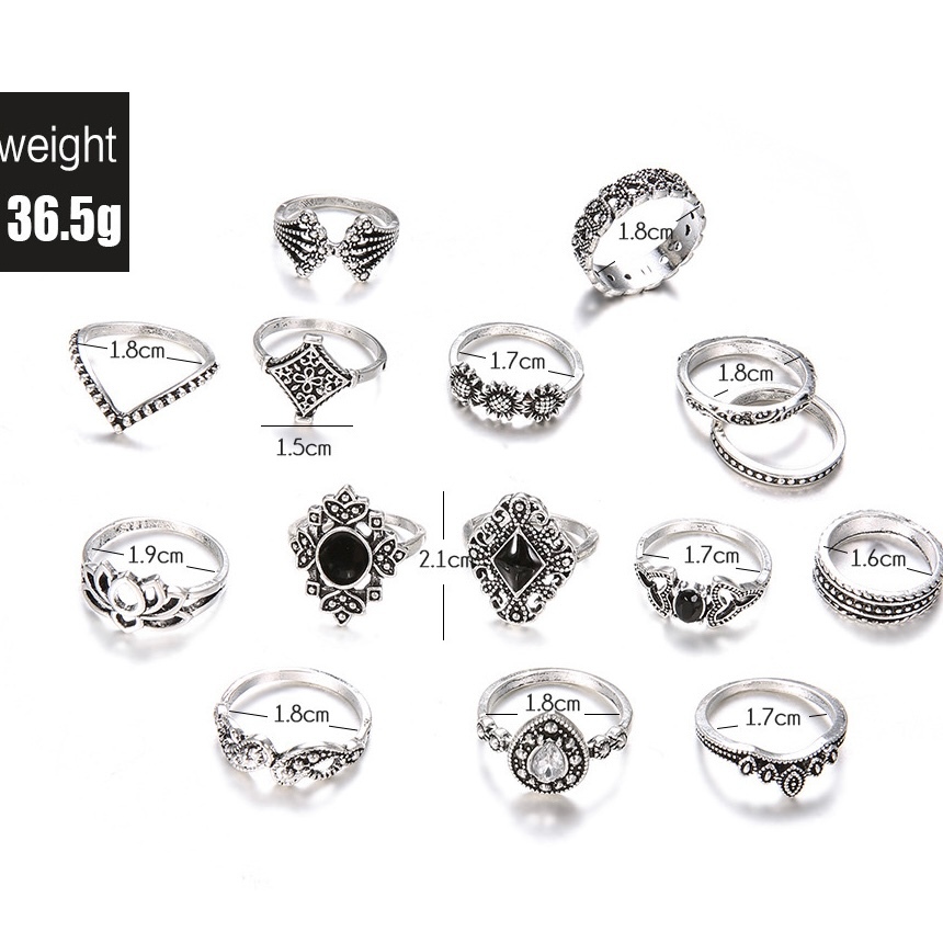 Conjunto de 15 peças de prata, anel temperamento de personalidade europeia e americana, lótus oco, girassol feminino