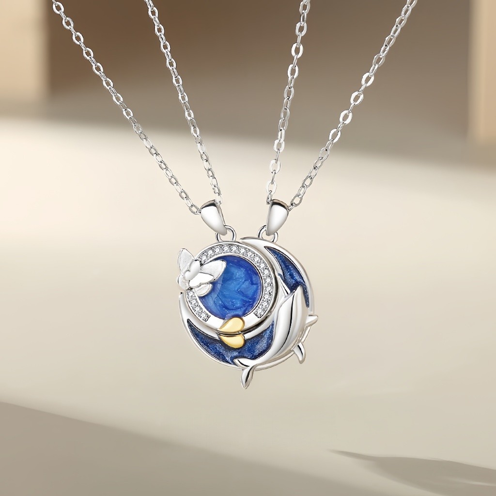Conjunto de 2 peças de colar de casal de borboleta baleia homens e mulheres um par de corrente de clavícula de borboleta