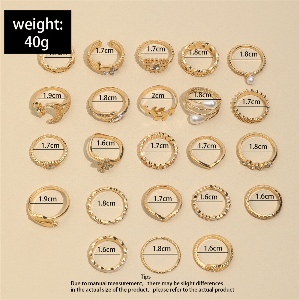 Conjunto de 23 peças Imitação Fashionable Pearl Design Rhinestone Cross Demon Eye Geometric Ring