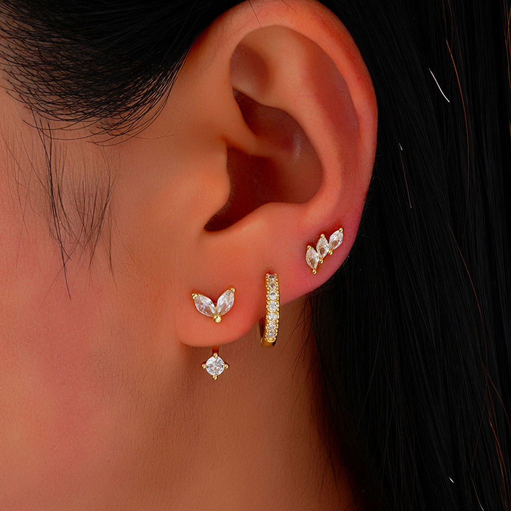 Conjunto De 3 Pares De Brincos Vnox Para Mulheres Em Formato De Grão De Trigo CZ Huggie Joias