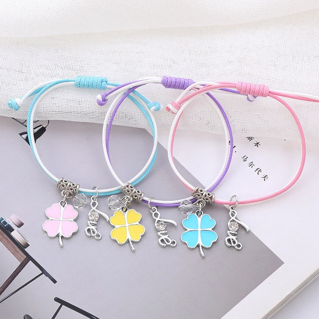 Conjunto de 3 peças amizade casal pulseira menina bonito dos desenhos animados pingente ajustável moda cor senhoras HGF