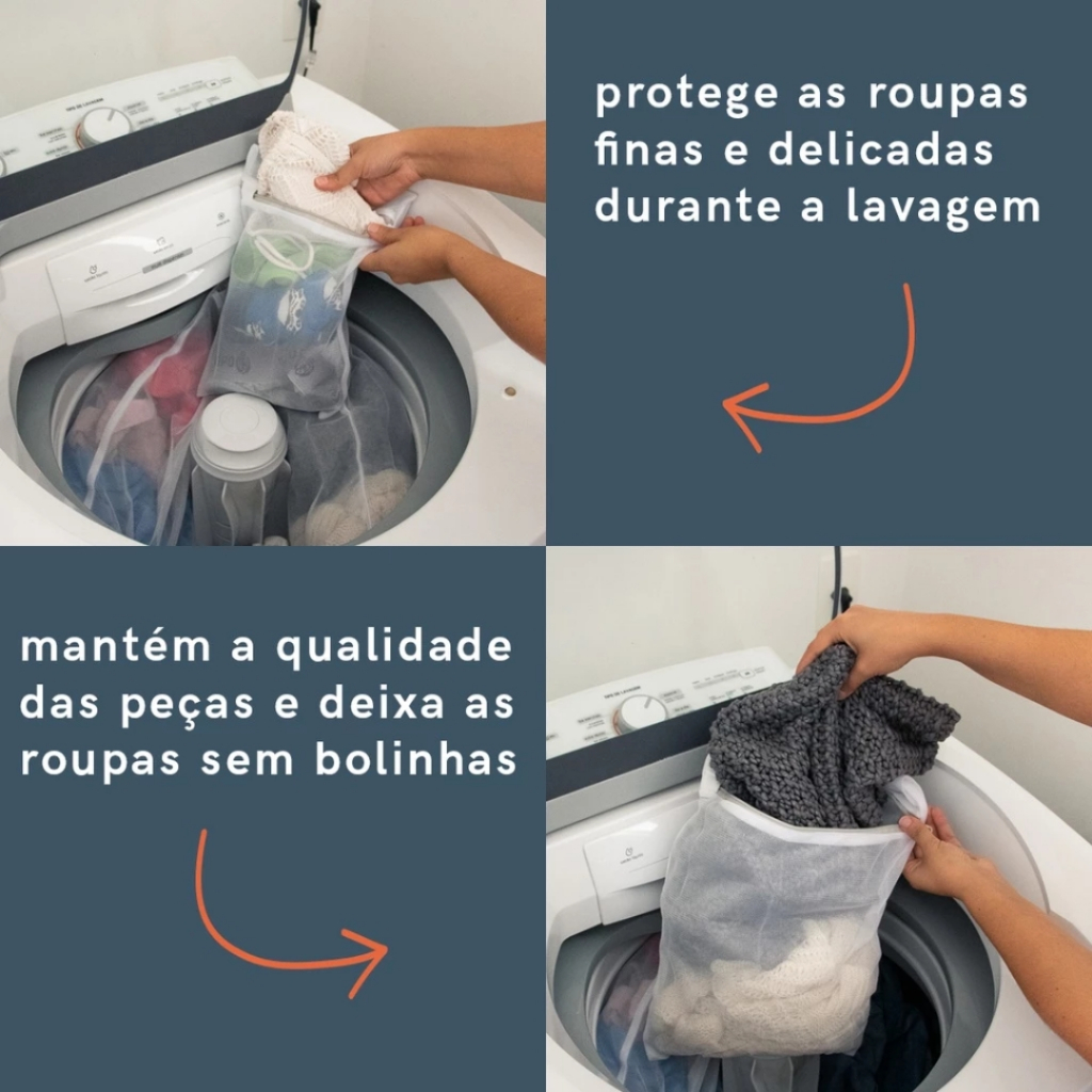 Proteja suas roupas durante a lavagem com este kit de 3 tamanhos diferentes. Indicado para peças íntimas, roupas delicadas e até roupas de cama. Também pode ser usado para organizar roupas em malas de viagem. Evita fiapos e bolinhas, mantendo a qualidade dos tecidos por mais tempo. Conta com zíper reforçado e compartimento protetor para não danificar outras peças durante a lavagem.