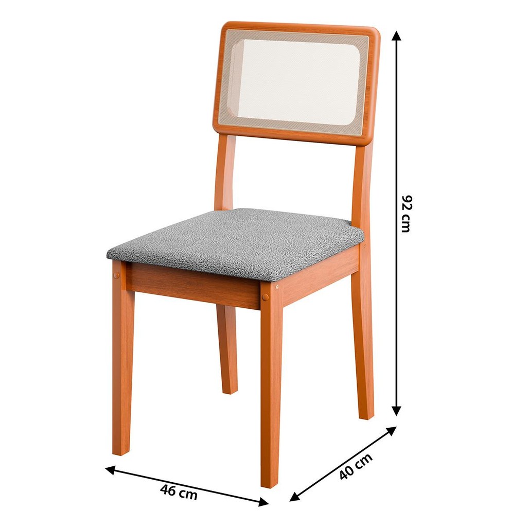 Esta cadeira é a combinação perfeita de conforto e estilo, projetada para se adaptar a qualquer ambiente. Seu design moderno e elegante não só embeleza o espaço, mas também proporciona uma experiência de uso excepcional. Não perca a oportunidade de transformar seu lar ou escritório com esta peça indispensável! Modelo: Cadeira Santiago 4 Unidades; Material da estrutura: MDF 25mm com espuma D20 revestido com tecido boucle, com encosto de tela sintética; Material dos pés: MDF; Dimensões: 46 cm(L) x 92 cm(A) x 41 cm(P); Altura do chão ao assento: 47 cm; Altura do encosto: 44 cm; Profundidade do assento até encosto: 40 cm; Acabamento: Revestido com tecido boucle; Possui Apoio para Braços: Não; Quantidade de cadeiras: 04 unidades; Peso suportado por cadeira: até 110 kg distribuídos; Requer montagem: Sim (kit montagem incluso); Tonalidade das Cores: Cinamomo: Fosco. Informações adicionais: - Os objetos que ambientam as fotos não acompanham o produto; - É de inteira responsabilidade do cliente a montagem do produto e/ou instalação, assim como possíveis irregularidades provenientes de manuseio inadequado; - Embora o produto acompanhe o manual de montagem, verifique a complexidade antes de decidir montá-lo sozinho, recomendamos que contrate um profissional de sua confiança; - Fique atento, nossas cores podem sofrer alterações dependendo do seu monitor; - ANTES DE MONTAR O SEU PRODUTO, verifique se há alguma peça danificada, caso esteja, prestaremos a devida assistência dentro do prazo da garantia.