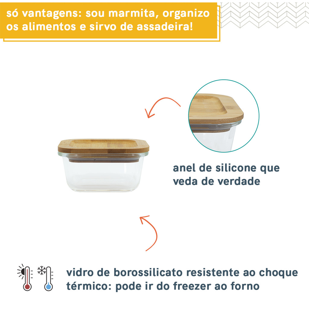 "Esse é o kit de 4 potes de vidro quadrado de 320 ml com tampa de bambu da OIKOS. Além de lindo e natural, esse pote tem vedação de silicone, o que garante a conservação dos alimentos por muito mais tempo. O seu corpo de vidro é ótimo para transitar em diferentes territórios: forno, micro-ondas, geladeira, freezer e lava-louças. Além disso, a sua tampa também encaixa na base do pote, tornando-se um apoio que protege mesas e bancadas. Esse KIT é composto por 4 unidades - Pote Hermético de 320 ml com Tampa de Bambu Comprimento: 11 Largura: 11 Altura: 5,5 (CM)"