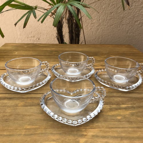 Conjunto de 4 Xícaras de Chá 180ml com Pires Coração Pearl - Wolff