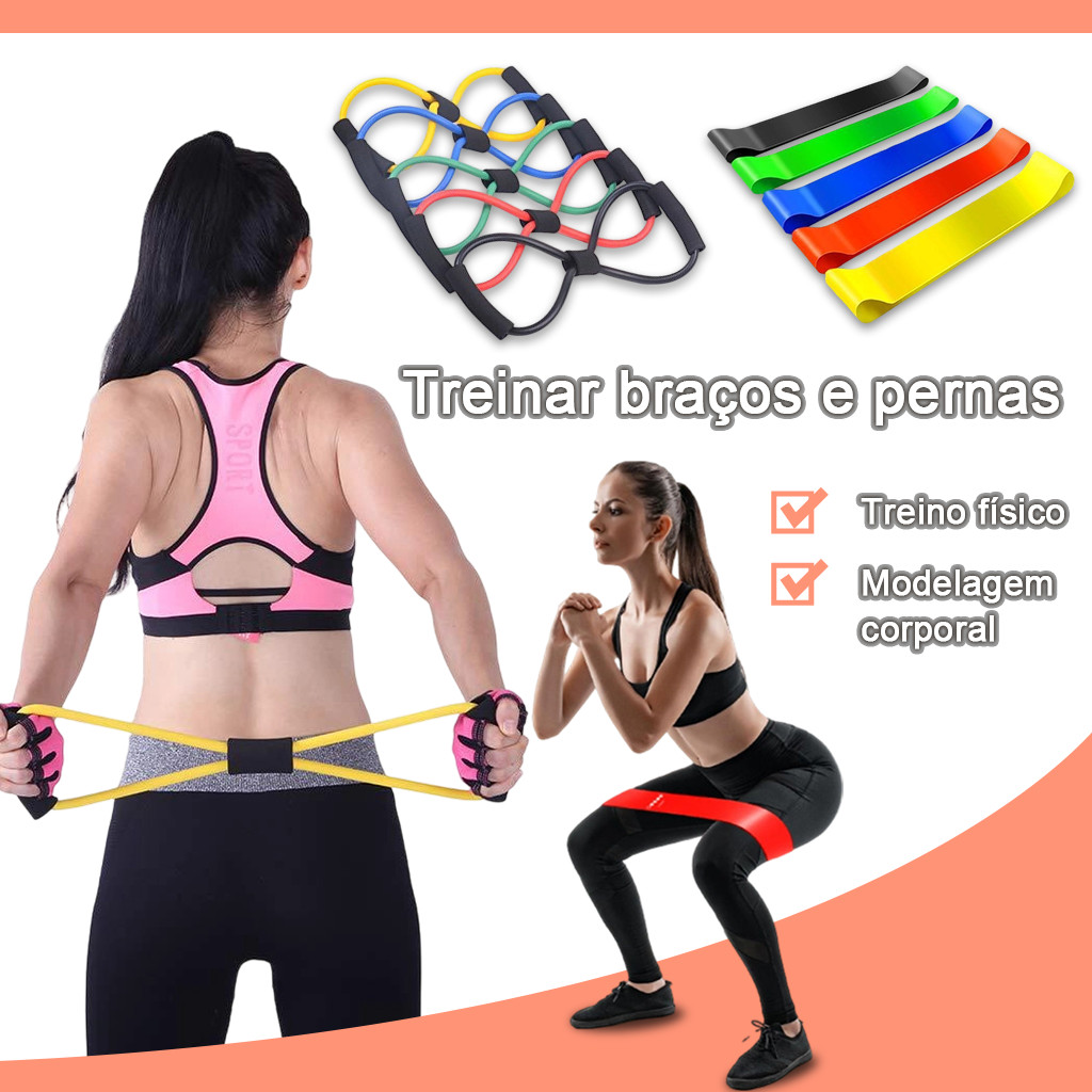 Conjunto de 5 peças de faixa elástica de treinamento + extensor elástico para exercícios + massageador elétrico