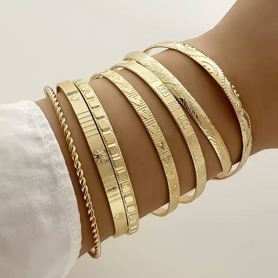 Conjunto De 7 Pulseiras Punk Estilo Retr Geom Trico Irregular Pulseira Com Tor O Suave