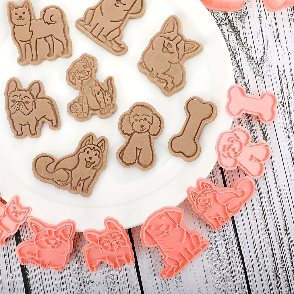 Conjunto de 8 Cortadores de Biscoitos com Tema de Cães, 7 Tipos de Cães e 1 Cortador de Biscoitos com Padrão de Osso
