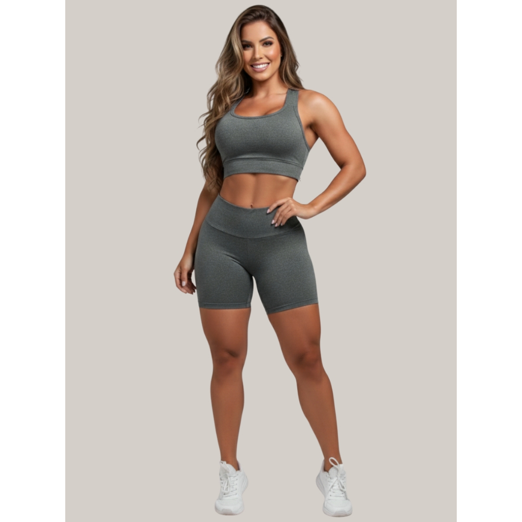 Conjunto de Academia Fitness Short e Cropped Roupas Femininas Ginástica Suplex A11
