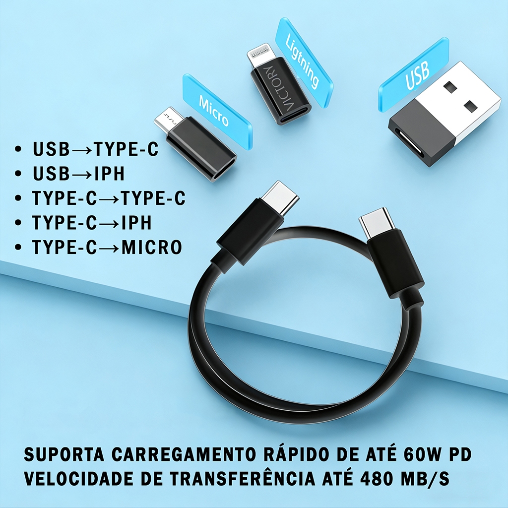 🌍 Item essencial para viagens | Kit Organizador de Adaptadores USB Multifuncional Chega de carregar mil cabos! Um estojo resolve todos os conectores — realmente “um estojo para dominar todos” ✈️ 🔥 Principais destaques de uma vez 4 conectores intercambiáveis Compatível com USB ↔ Type-C ↔ Lightning ↔ Micro USB Celular, tablet e notebook — tudo funciona! Suporte dobrável para celular escondido 📱 Levante a peça preta + encaixe a base = suporte perfeito para ver séries Maratonar vídeos, fazer chamadas de vídeo ou seguir tutoriais com as mãos livres! Suporta carregamento rápido de até 60W PD ⚡️ Funciona com MacBook, iPad e celulares Android Estojo super compacto — cabe no bolso Leve, cabe em qualquer bolso ou bolsa Organiza tudo e ainda guarda chips 2 slots para Nano SIM + 1 slot para Micro SIM agulha ejector de chip inclusa (*não inclui chips SIM nem cartão de memória) Materiais premium — resistente e elegante Liga de alumínio + ABS + PVC, super durável Cabos mais longos e grossos = carregamento e transferência mais rápidos Velocidade de transferência até 480 MB/s 🎨 Especificações do produto Nome: Estojo Organizador de Adaptadores USB para Dispositivos Digitais Material: PVC + ABS + liga de alumínio Cores: Preto clássico / Branco puro Tipos de conversão suportados: • USB → Type-C • USB → IPHONE • Type-C → Type-C • Type-C → Lightning • Type-C → Micro USB Compre uma vez, use para sempre! Viagens a trabalho, lazer, mochilão ou dia a dia — tudo resolvido!