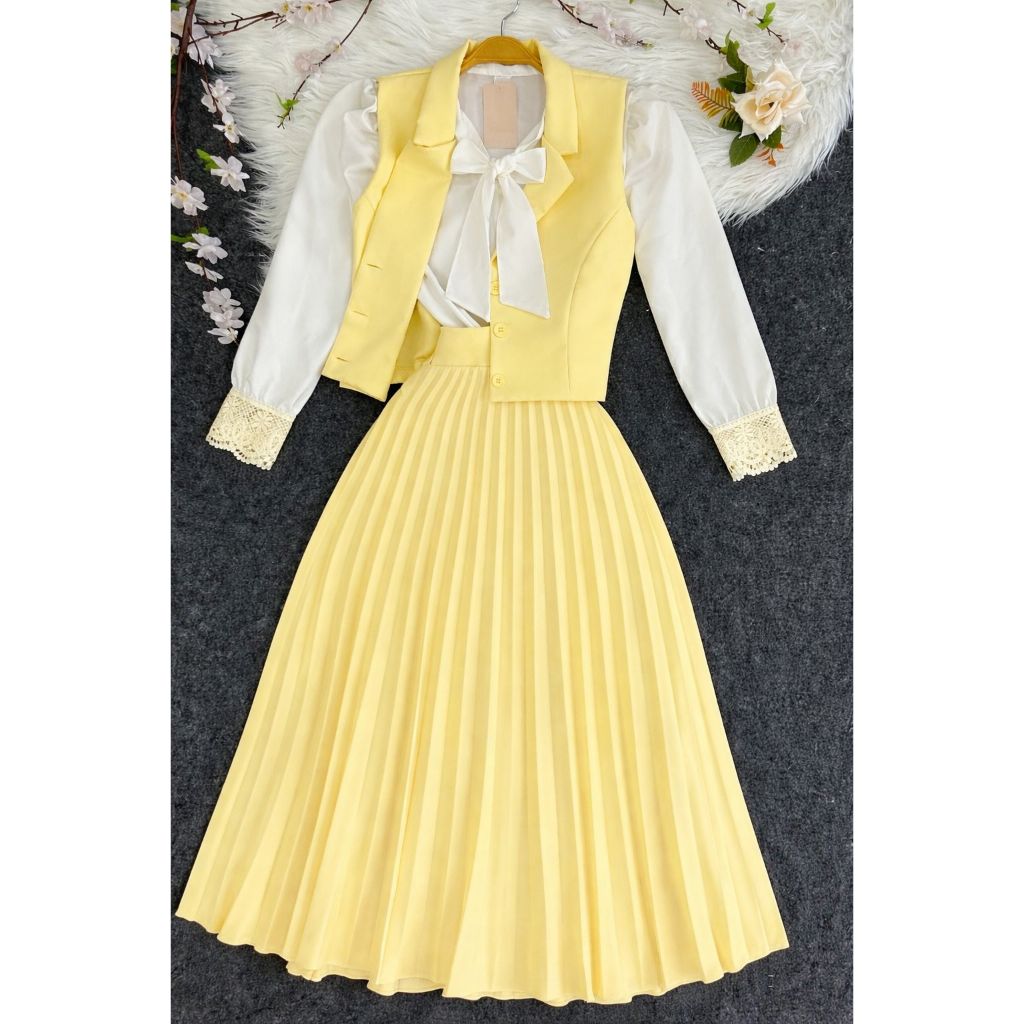 Este CONJUNTO ALFAIATARIA é a combinação perfeita para eventos casuais ou formais! O colete possui modelagem acinturada, fechamento frontal e detalhes que valorizam a silhueta. Já a saia, em comprimento midi alongado, apresenta plissado suave que traz elegância e fluidez. -Corte de alfaiataria com acabamento premium; -Colete com fechamento frontal e modelagem ajustada; -Saia plissada midi com caimento fluido; -Tecido encorpado e confortável; TABELA DE MEDIDAS: Tamanho P COLETE: Busto- 48cm Comprimento- 51cm SAIA: Cintura/36-38cm Comprimento--94cm Tamanho M COLETE: Busto- 51cm Comprimento-52cm SAIA: Cintura/38-40cm Comprimento:95cm Tamanho G COLETE: Busto- 53cm Comprimento-53cm SAIA: Cintura/40-42cm Comprimento:96cm