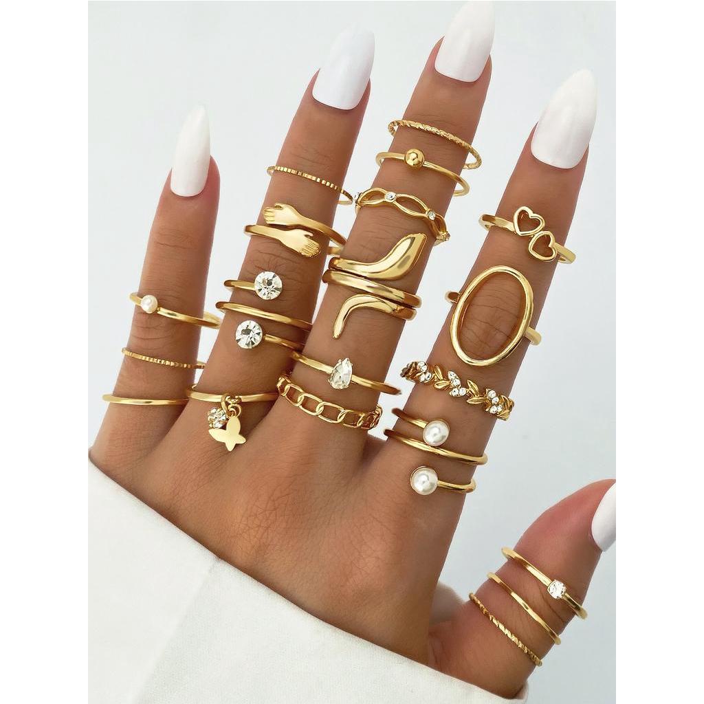 Conjunto De Anel Com Pingente De Borboleta De Cobra De Trigo Em Camadas , 20 Peças De Anéis De Ouro Para Mulheres , Joia