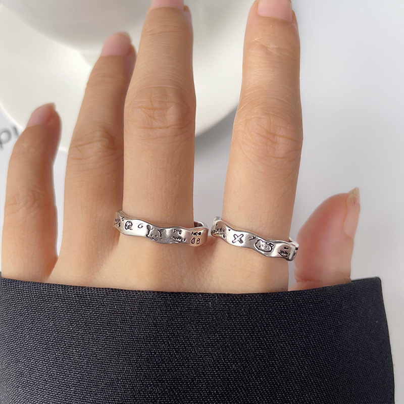 Conjunto De Anel De Casal De Anime De Desenho Animado , Acessórios De Joias De Liga De Graffiti , Design Ajustável Para