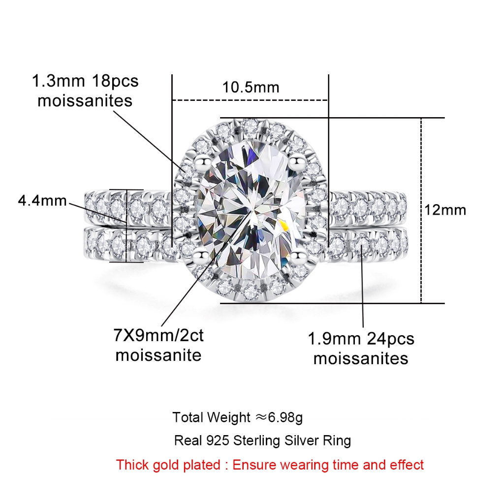 Conjunto De Anel De Noivado De Moissanite Oval AnuClub , Cor D VVS1 , Aniversário De Promessa De Prata Esterlina 925 Par