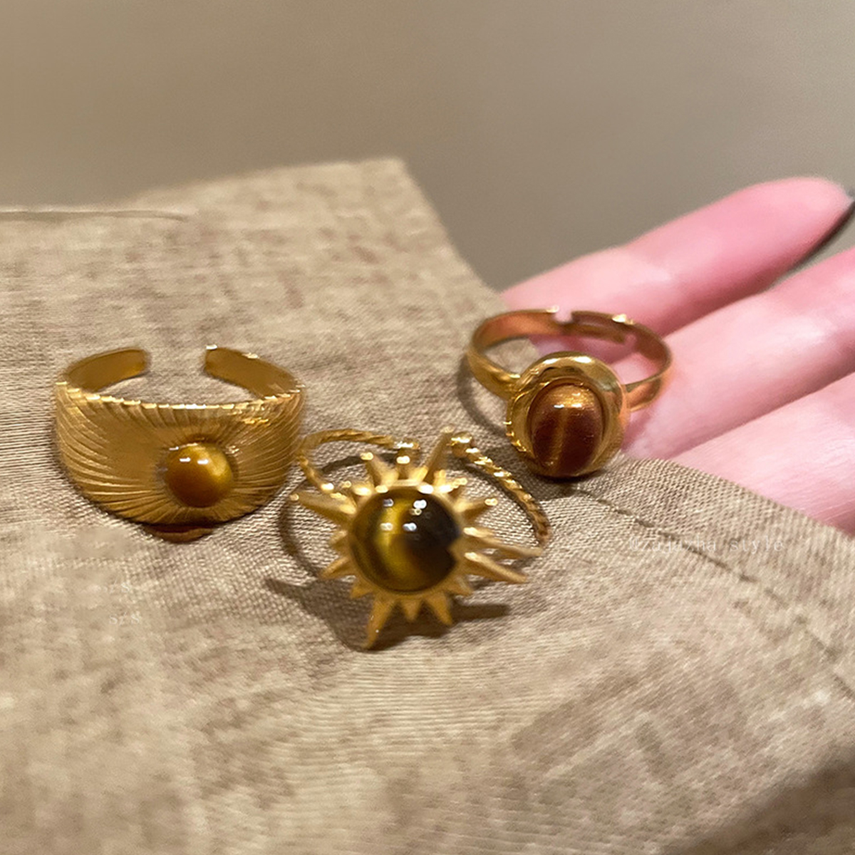 🌟 Conjunto de anel de girassol tigre tigre conjunto de anel de girassol de olho de tigre - arrojado e místico Abrace sua confiança interna com esta requintada coleção de anel de olho de tigre de 3 peças, onde o luxo dourado encontra a misstique terrestre. ✨ Conjunto de destaques 🔹 Pedras oculares de tigre genuíno Material: liga folheada a ouro Premium + pedras oculares de tigre genuíno 🔹 Designs de Designs de Designs: Esquerda esquerda: Anel aberto com textura de penas com pedra cabochon Centro de pedra dramática: Centro radiante: motivo de sol radiante com centro de pedra dramática Direita: Banda minimalista com pedra com descarga 🔹 Característica da característica: Hipoalergênica e sem níquel: Hipoalergênica e sem níquel 🔹 OCASIões: Molho de energia do escritório O fim de semana boêmio parece Declarações especiais de ocasião especial Presentear significado para presentear 🌻 Por que você vai adorar As variações naturais dos olhos do tigre tornam cada peça única Designs ergonômicos confortáveis Potência de empilhamento versátil Embalagem de luxo pronta para presente Detalhes iniciantes por conversação ⚠️ Notas Importantes • As pedras podem variar de cor/padrão naturalmente • As pedras podem variar de cor/padrão naturalmente • Evite água e produtos químicos agressivos Armazenar na bolsa de veludo incluída