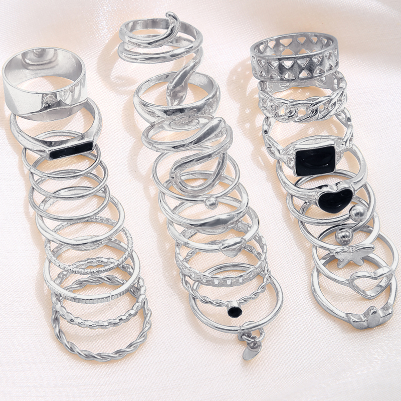 Conjunto De Anel Vintage De 27 Peças Para Mulheres-Coração Cobra Borboleta Geométrica Oca Joias De Dedo