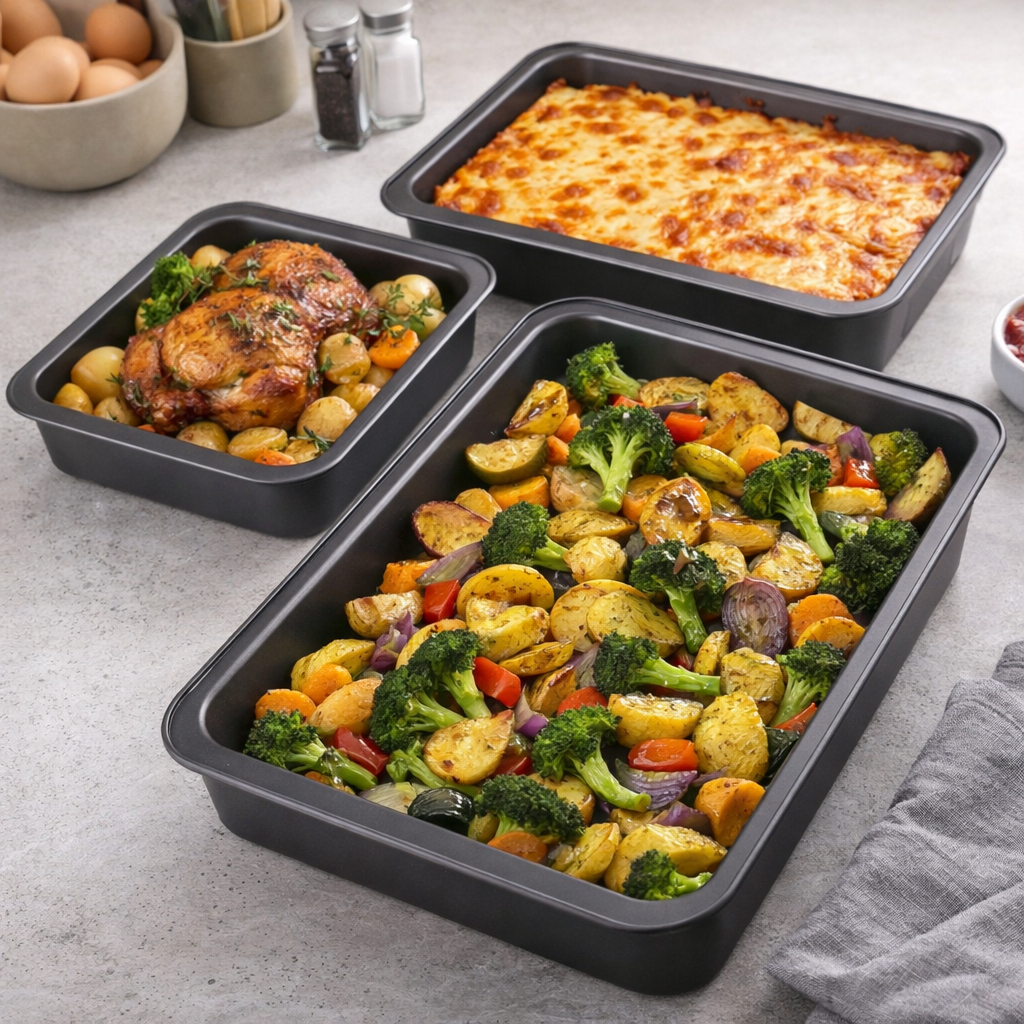 Conjunto de assadeiras antiaderente retangular teflon alta formas de bolo pão de queijo 3 pcs preta