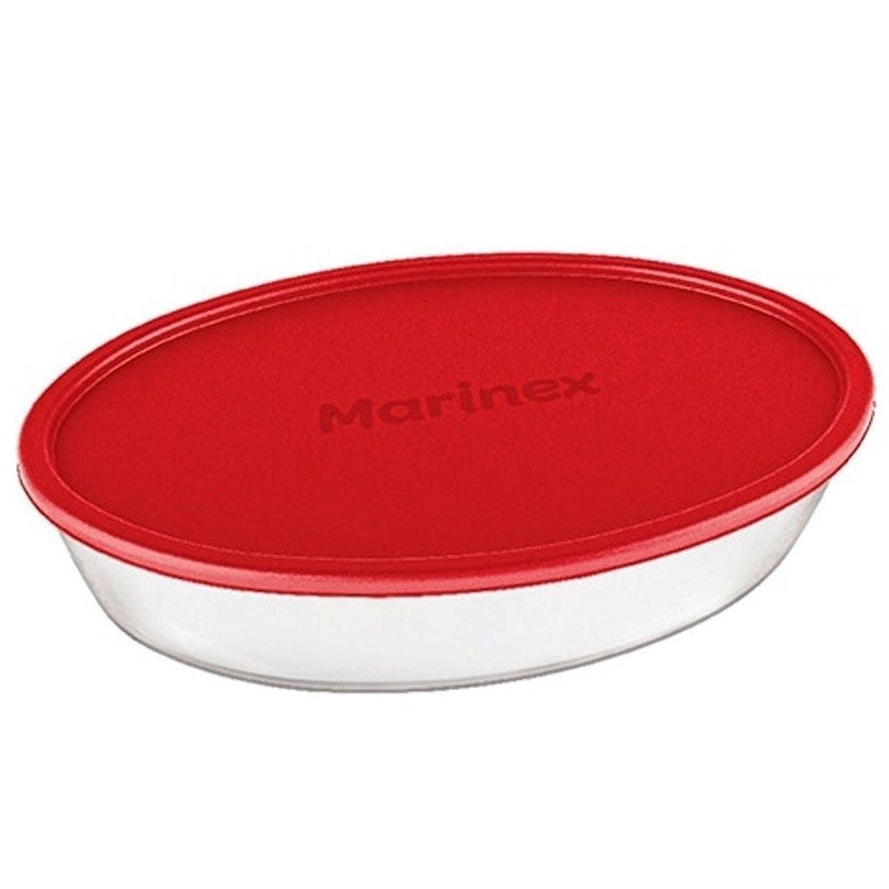 Conjunto de Assadeiras de Vidro Marinex com Tampa Vermelha 6 Peças