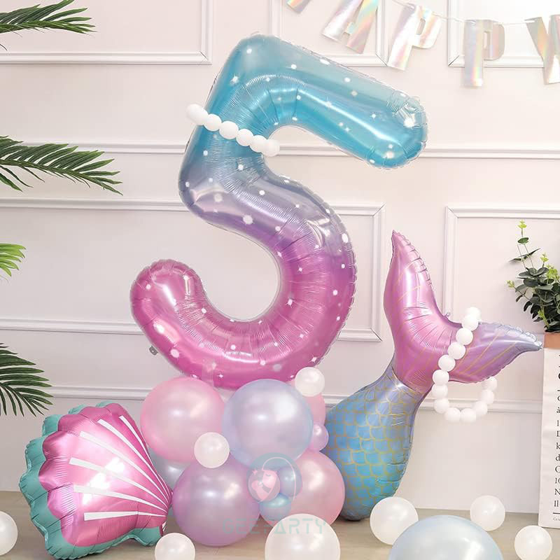 Conjunto De Balões GeeParty 32 Peças Gradiente Estrelado Número Para Menina Sereia Sob O Mar Decoração De Aniversário