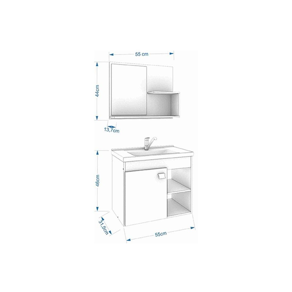 Conjunto de Banheiro Balcão Suspenso Lótus/Bia c/ Cuba 55cm e Armário c/ Espelho Amendoa/Branco - MGM Marca: MGM Dimensões(Cm): Comprimento(Profundidade): 31,5cm x Largura: 54,5cm x Altura: 46cm Material de Estrutura - Estrutura 100% MDF Tipo de Pintura - Pintura em UV (Ultravioleta) Tipo de Acabamento da Pintura - Pintura Fosco Vantagens Extra dos Móveis de Banheiro e Lavanderia - Possui Espelho - Sim Material da Cuba - Cuba em Mármore Sintético Quantidade de Portas - 1 Porta de Abrir Tipo de Dobradiças - Dobradiças Metálicas Tipo de Puxador - Puxador em ABS / PVC Quantidade de Prateleiras - 2 Prateleiras Quantidade de nichos - 2 Nichos Garantia - Garantia de 90 dias Certificação de Qualidade - Qualidade Aprovada Imagens Meramente Ilustrativas. Não nos responsabilizamos pela montagem/instalação dos produtos. Todas as informações divulgadas são de responsabilidade exclusiva do fabricante/fornecedor. -Verifique com os fabricantes do produto e de seus componentes eventuais limitações à utilização de todos os recursos e funcionalidades - Confira as dimensões do produto e analise se irão passar normalmente por elevadores, portas, escadas e corredores, pois não nos responsabilizamos caso o produto necessite durante a entrega de: Desmontagem, subir escadas ou ser transportado por guincho, cordas para apartamentos. A entrega limita-se ao descarregamento em local que tenha e ofereça total facilidade de acesso normal; - Só fazemos entregas por transportes rodoviários. Não realizamos entregas por transportes fluviais, aéreos e outros diferente de rodoviário. Não realizamos entregas na região norte: Amapá, Amazonas, Pará, Roraima e Acre; - Temos áreas com restrição e dificuldades que os transportadores rodoviários não atendem. Área de difícil acesso, área de risco, área rural, áreas fluviais, estradas não pavimentadas; - Sendo assim, caso seu endereço esteja em área restrita de entrega, a retirada de sua compra deverá ser realizada no CD do transportador ou indicar no momento da compra um endereço entrega fora da área restrita; - Caso realize pedido com entregas em locais de difícil acesso ou áreas com restrição e dificuldades que os transportadores e proprio correios não atendem, a compra sera cancelada pela Costa Rica Colchões, com a devida comunicação e estorno do pagamento ao cliente.