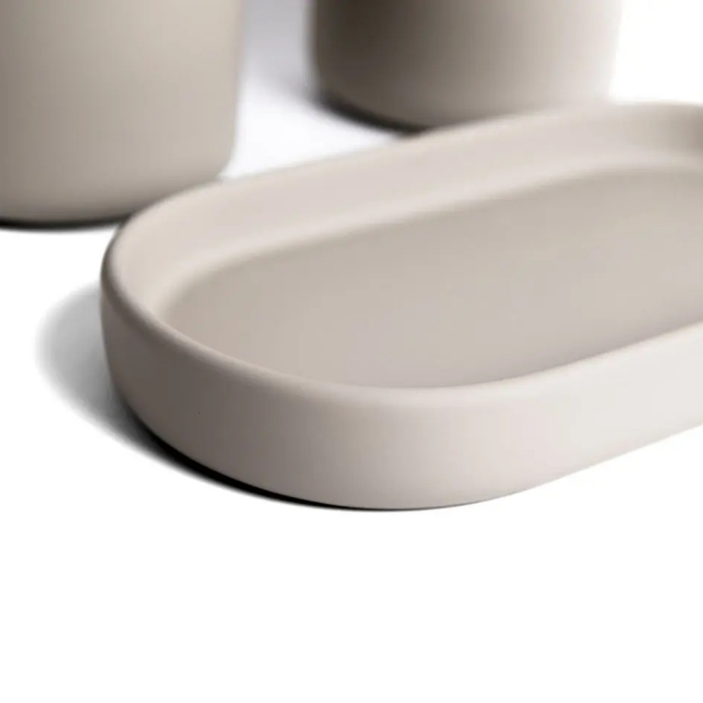 Com design clean e atemporal, esse conjunto é ideal para quem deseja unir elegância, organização e praticidade no dia a dia. Produzido em cerâmica de alta qualidade, cada peça é resistente e durável, preservando sua beleza por muito mais tempo. Sua textura suave ao toque e o acabamento minimalista reforçam o ar de requinte, combinando facilmente com qualquer estilo de decoração. Diferenciais que encantam: Design Atemporal: Linhas minimalistas que se adaptam a qualquer ambiente. Qualidade Superior: Cerâmica de alta resistência e longa durabilidade. Praticidade no Dia a Dia: As três peças essenciais para manter o banheiro organizado. Elegância Discreta: Sofisticação sem excesso, valorizando sua bancada com equilíbrio. Conteúdo do Conjunto: 1 Porta-sabonete Líquido Cinza : 19,5 cm (A) x 8 cm (L) x 8 cm (C) | Capacidade: 480 m 1 Porta-escova Cinza: 11,2 cm (A) x 8 cm (L) x 8 cm (C) 1 Bandeja Cinza: 9,5 cm (L) x 18 cm (C) Renove seu banheiro com o essencial, sem poluição visual — apenas praticidade, sofisticação e harmonia no ambiente.