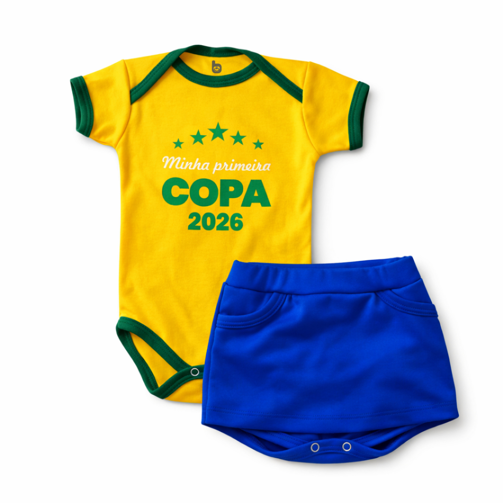 Conjunto de Bebê Infantil Brasil Copa do Mundo 100% Algodão.