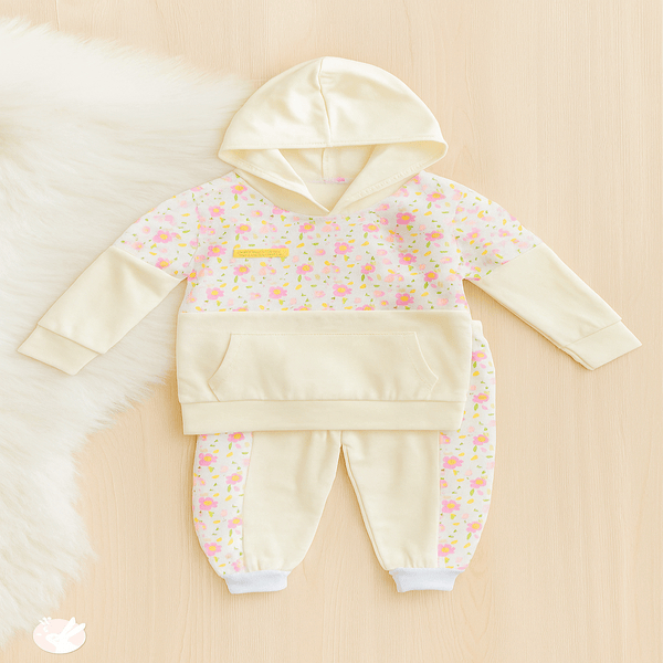 Conjunto de bebe menina blusa manga longa com capuz + calça meia estação