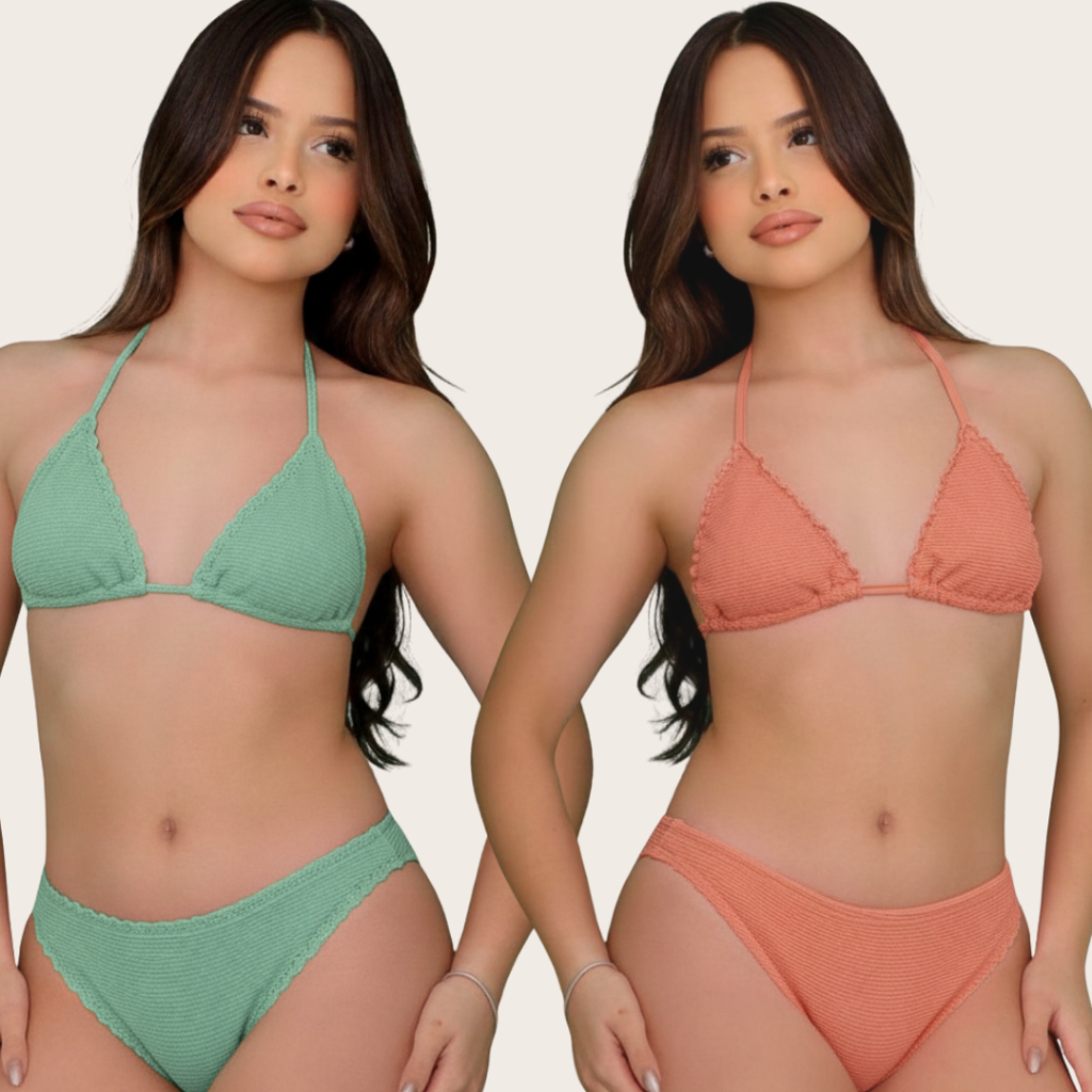 Conjunto de Biquíni Cortininha Para Meninas em Tecido Canelado