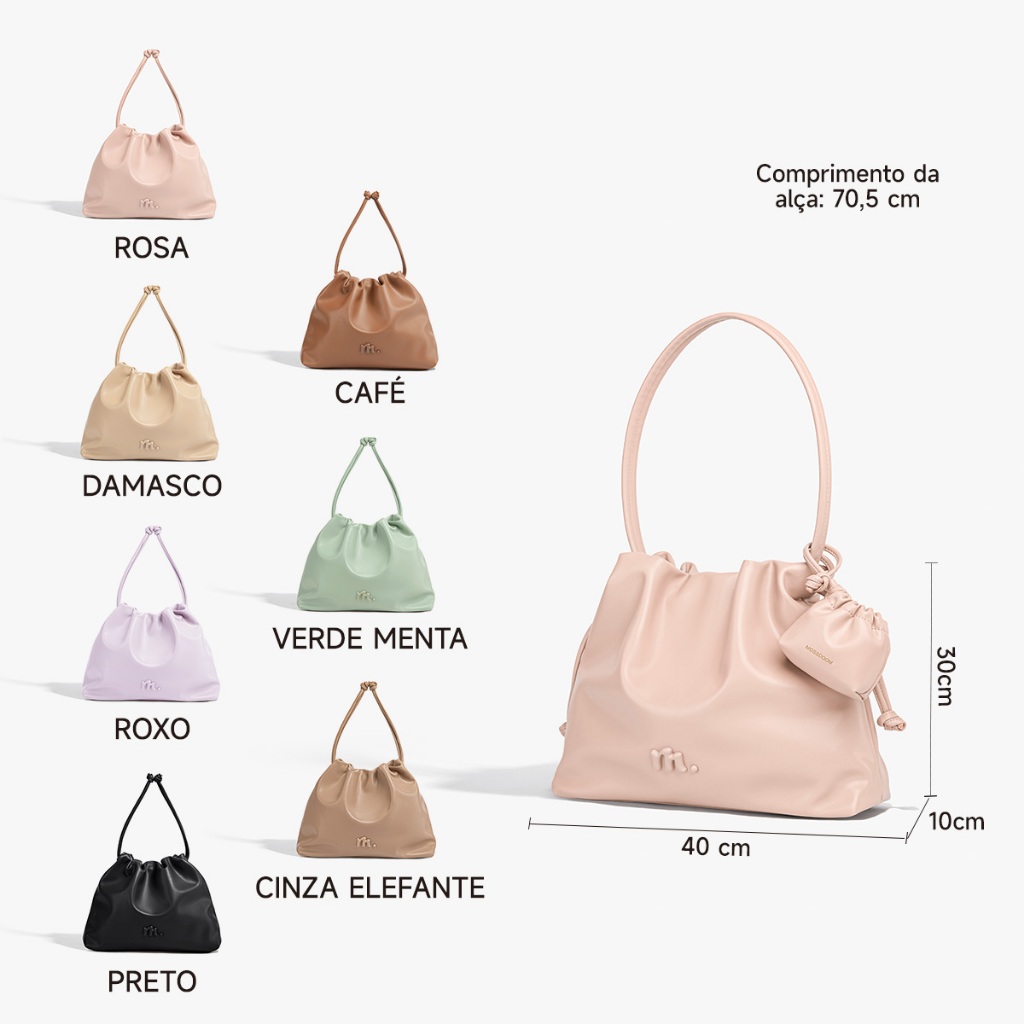 Bem-vindo à loja oficial da MOSSDOOM! Garantimos que todos os nossos produtos são 100% autênticos. ·Material: Couro PU macio e agradável ao toque ·Tamanho: 40 * 10 * 30 cm ·Cores: Rosa / Damasco / Roxo / Preto / Café / Verde / Cinza ·Estrutura interna: Compartimento principal grande * 1 / Bolso interno com zíper * 1 / Divisória interna * 1 / Bolso interno para objetos * 1 ·Peso do produto: 0,53 kg Observações: ·Como o produto é medido manualmente, pode haver um erro de 1-3 cm. Agradecemos sua compreensão. ·O produto está em estoque e pode ser encomendado diretamente. Se, por algum motivo especial, não pudermos efetuar a entrega no prazo, informaremos você. Se tiver alguma dúvida sobre o produto, por favor nos avise. Resolveremos o mais rápido possível!