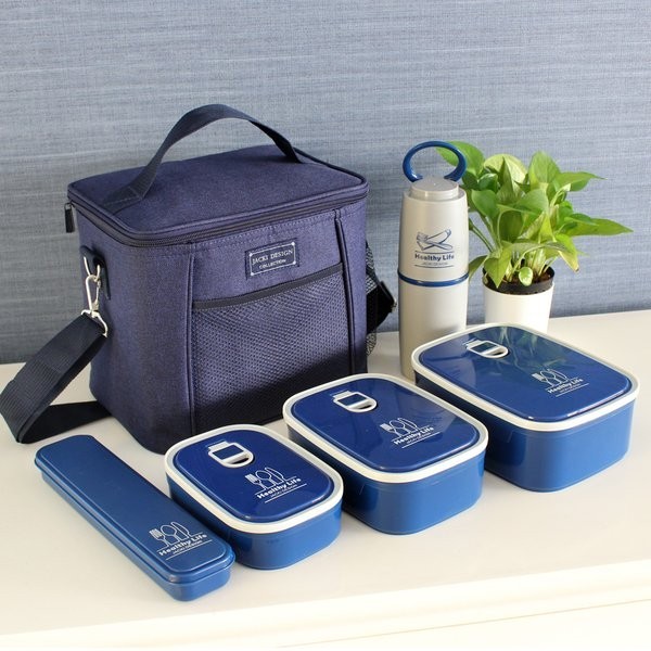 Conjunto de Bolsa Térmica e Pote p/Alimentos c/ 3 pcs com Porta Escova e Pasta de dente Jacki Design