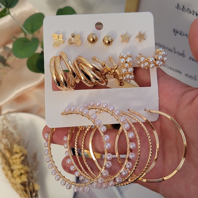 Conjunto De Brincos Femininos Geométricos De Liga Metálica/Borboleta/Círculo/Vintage