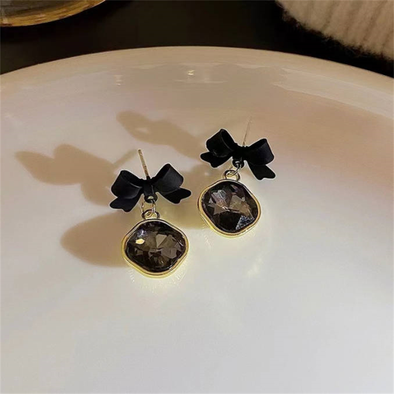 Conjunto De Brincos Geométricos De Strass Preto Para Mulheres – Pendurados Com Laço Moderno Uso Diário/Festa