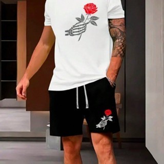 Conjunto de camiseta de manga curta e shorts Masculino Tactel