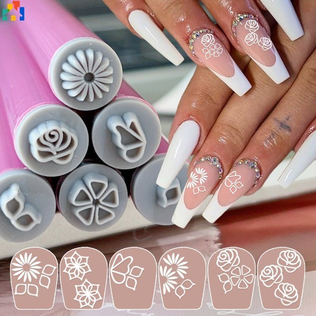 Conjunto De Canetas Para Carimbo De Arte Em Unhas , 6 Unidades , Flores , Ferramentas De Pontilhamento DIY , Placa De Es