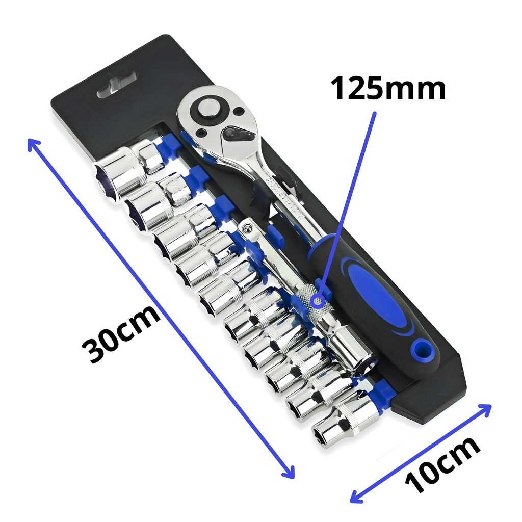 Conjunto de Chave Catraca 12 Peças com Soquetes e Extensão - Aço Vanádio Premium