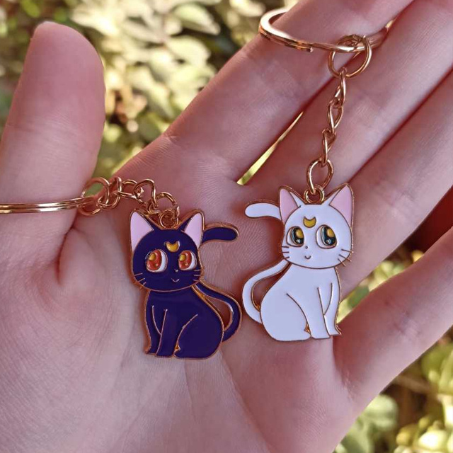 Conjunto de Chaveiros Gatinhos Sailor Moon Luna e Artemis Gato Couple Casal Amizade Presente Fofo Anime Geek