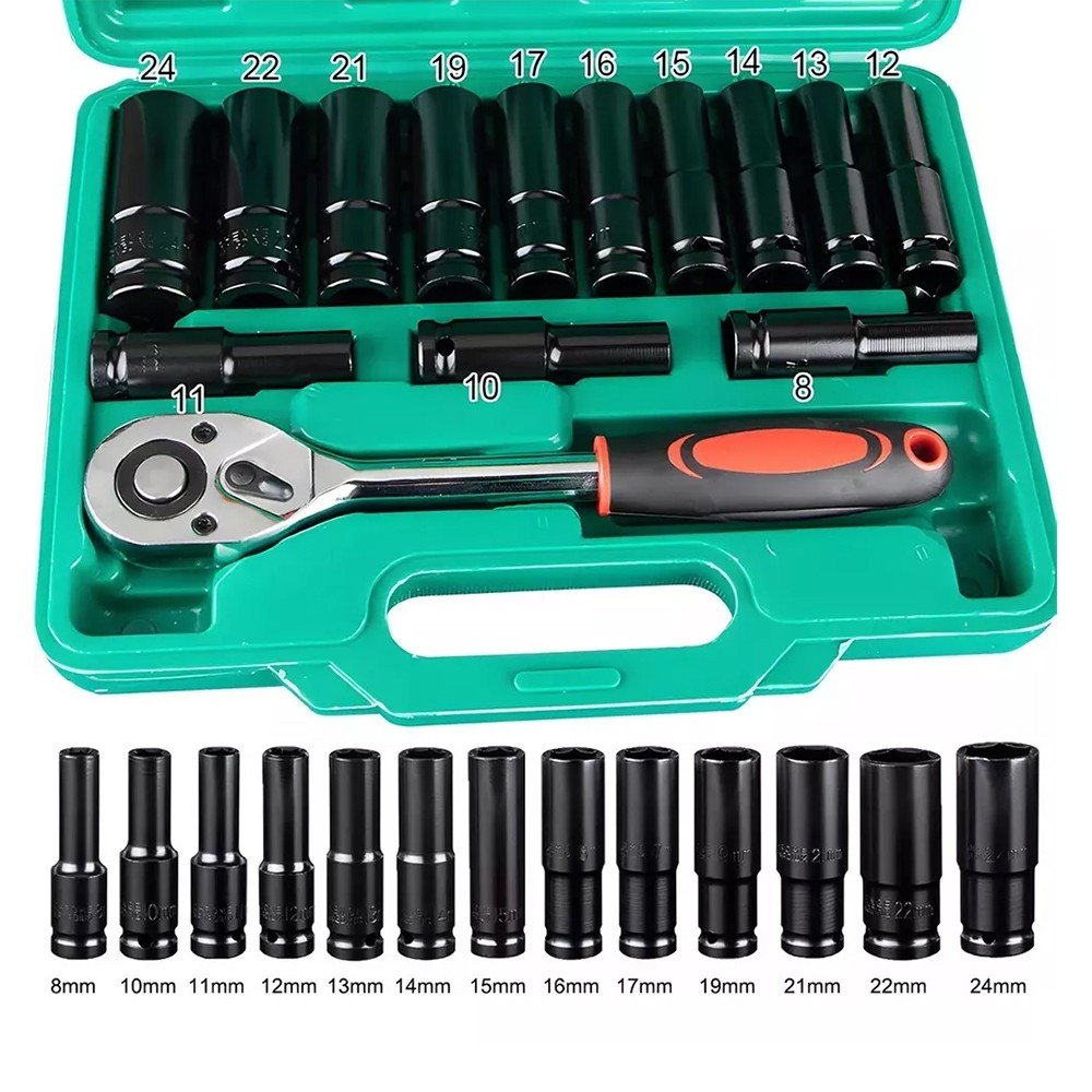 Se você precisa de um conjunto de chaves de soquete elétricas duráveis e de alta qualidade, este conjunto de 14 peças agora é sua melhor escolha. Se você tem interesse em reparos de automóveis ou motocicletas, equipamentos marítimos ou industriais, ou até mesmo melhorias na casa, este conjunto é perfeito para você. Materiais de alta qualidade: Este conjunto de tomadas elétricas de 14 peças é feito de aço temperado para resistir à abrasão e ao desgaste. Esta chave de torque apresenta uma construção resistente e também um revestimento de óxido preto de alta qualidade que não quebra facilmente sob alta pressão, proporcionando máxima resistência e vida útil. Excelente desempenho: Não importa se você usa uma chave elétrica ou uma chave manual, esses soquetes de aço temperado de alta qualidade oferecem desempenho superior. O conjunto de soquetes de impacto apresenta um design de soquete sextavado côncavo de 6 pontos que ajuda a fixar as superfícies planas do fixador (não apenas os cantos), entrando em contato e prendendo os lados planos mais fortes da porca ou cabeça do parafuso, em vez do canto mais fraco. amplamente utilizado: O conjunto de ferramentas com 14 peças inclui soquetes de impacto de alto torque com encaixe de 1/2 polegada (métrico): 8 mm, 10 mm, 11 mm, 12 mm, 13 mm, 14 mm, 15 mm, 16 mm, 17 mm, 19 mm, 21 mm, 22 mm, 24 mm. Este kit de máquina-ferramenta também possui uma catraca de 1/2" (ajustável para frente e para trás) com botão de liberação para trocas rápidas de brocas, encaixa-se precisamente em soquetes de 1/2" e produz alto torque, todos os soquetes são gravados com marcações de tamanho, você pode identificar rapidamente o tamanho e o tamanho do soquete, que é o melhor auxiliar para adaptador de broca, adaptador de impacto e adaptador de chave de fenda. Compacto e portátil: Vem com uma caixa de armazenamento de plástico resistente para fácil classificação e armazenamento de soquetes de acionamento e fácil transporte dos soquetes. Soquetes de vários tamanhos são ferramentas importantes para fixar parafusos, porcas e soquetes, mantendo suas ferramentas organizadas. Informações do produto: Marca: FIXITFAST Categoria do produto: Ferramentas de soquete Material do produto: aço de alto carbono. Tamanho da catraca: 1/2 pol. (12,7 mm) Tamanhos de soquete sextavado (métrico): 8 mm, 10 mm, 11 mm, 12 mm, 13 mm, 14 mm, 15 mm, 16 mm, 17 mm, 19 mm, 21 mm, 22 mm, 24 mm Embalagem do produto: 30*23,5*6 CM Peso do produto: 2,6 kg Lista de embalagem: Mangá*13 Chave catraca*1 Caixa de ferramentas*1 Considere uma margem de erro de 1-2 mm devido à medição manual. Pode haver diferenças de cor devido a monitores diferentes. Consulte o produto real.