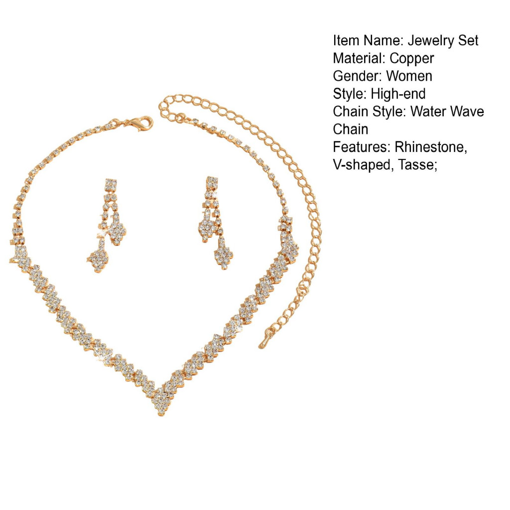 Conjunto De Colar E Brincos De Strass Em Forma De V Para Noiva , Joias De Casamento Mulheres , Perfeito Baile Festas , D