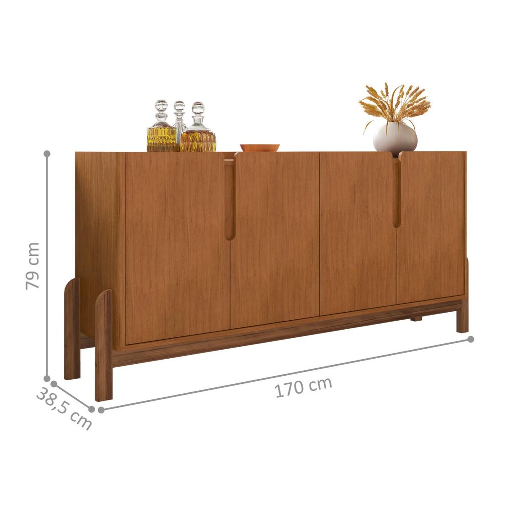 Esse Conjunto de Buffet e Cristaleira é perfeito para a sua sala de jantar ou de estar, com seu charme industrial para a renovação do seu ambiente elegante e moderno. O Buffet é feito em MDP/MDF. Possui 4 portas em MDF usinados com detalhes curvos e 2 prateleiras. A Cristaleira é um móvel indispensável para quem gosta de esbanjar produtos de cozinha e objetos de decoração. Feita em MDP/MDF 15mm. Contém 4 portas, 4 nichos e 4 prateleiras para acomodar garrafas,copos e taças. Medidas Da Cristaleira: Altura: 179 cm Largura: 83 cm Comprimento: 36 cm Informações da Cristaleira: Cor: Cedro Portas: Sim (4) Nichos: Sim (4) Prateleira: Sim (4) Pés: Sim (4) Madeira Maciça Puxadores:Sim (2) Couro Material: MDP/MDF 15mm Dimensão do Buffet: Altura: 79 cm Largura: 170 cm Comprimento: 38,5 cm Informações do Buffet: Cor: Cedro Portas:Sim (4) MDF Usinados Pés: Sim (4) Madeira maciça Prateleira: Sim (2) Material Principal: MDP/MDF Itens Inclusos: 1 Cristaleira 1 Buffet Manual de Montagem Kit completo para montagem e manual de instruções Garantia: 3 meses contra defeito de fabricação Informações Adicionais: - Fotos meramente ilustrativas do produto no ambiente. - Os objetos que ambientam as fotos não acompanham o produto; - Verificar descrição e tamanho do produto antes da compra. - Avaliar a mercadoria no ato do recebimento e recuse em caso de divergência ou avarias. - Mantenha as informações de contato e endereço de entrega atualizados para entrarmos em contato caso necessário. - Limpar com flanela ou pano macio seco, não utilizar produtos abrasivos, desengordurantes, álcool ou solvente. Não expor o produto diretamente à luz solar e à umidade. * Sugerimos a contratação de um montador profissional para a montagem do produto. Não nos responsabilizamos por avarias causadas no ato da montagem. * Não nos responsabilizamos pela montagem e desmontagem do produto no ato da entrega e devolução, assim como os custos gerados nestas situações. * A transportadora entregará o produto no andar térreo do endereço de entrega. * Não nos responsabilizamos por subir escadas, corredores e elevadores ou transporte por guincho em apartamentos