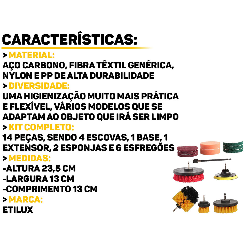 | Conjunto De Escovas Rotativas 14 Peças Para Limpeza De Carro Pisos ... este produto | R$ 81,45 | 45% | 5.0/5 | 1 |