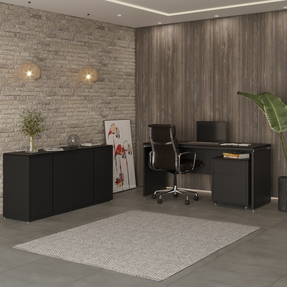 O Conjunto de Escritório Oslo é uma opção completa para aprimorar seu ambiente de trabalho. O Balcão Oslo traz versatilidade e elegância para seu espaço. Estrutura em MDP de 25 mm, garante durabilidade e resistência. Possui puxadores embutidos em MDF, 4 portas, divisão interna que conta com 2 prateleiras para acomodar todos os itens de escritório, como documentos e objetos pessoais. O Gaveteiro Oslo é ideal para organização, estrutura em MDP de 25 mm com gavetas de corrediças telescópicas, uma delas para itens diversos e outra para pastas suspensas. Os puxadores são usinados em MDF com bordas laqueadas e rodízios de silicone para fácil movimentação. A Mesa de Escritório Oslo é prática e elegante, com estrutura em MDP de 25 mm, tampo duplo chanfrado em MDP e MDF, bordas laqueadas, distanciadores e sapatas niveladoras cromadas para maior conforto no trabalho. ESPECIFICAÇÕES TÉCNICAS: - Material: MDP/MDF; - Material do Tampo: Tampos duplos MDP25 e MDF 15mm; - Material estrutura: MDP 25mm - Possui Portas: Sim, em MDF chanfrado; - Puxadores: Usinados nas portas e gavetas c/ acabamento laqueado; - Possui Prateleiras : Sim; - Possui Gavetas: Sim, 2(duas) no gaveteiro com corrediça telescópica; - Possui Nicho: Sim; - Rodízios: sim, 4 de silicone no gaveteiro; - Possui sapatas: Sim, niveladoras cromadas na mesa e no buffet; - Produto Precisa de Montagem? Sim; - Garantia: 3 Meses; - Instruções de Cuidado: Limpar com pano levemente umedecido; - Medidas Balcão (LarguraXProfundidadeXAltura): 180x43x80cm - Medidas Mesa (LarguraXProfundidadeXAltura): 160x68x80cm - Medidas Gaveteiro (LarguraXProfundidadeXAltura): 48,5x43x66,5cm - Conteúdo da Embalagem: (Conjunto de escritório + Entregue em: 4 Volumes) Informações importantes: Produto não devem ficar expostas diretamente ao sol, calor e umidades excessivas. Recomendações de Limpeza: Utilize somente pano seco ou levemente umedecido O produto pode sofrer alterações de tonalidade conforme o seu monitor Imagens meramente ilustrativas, produto não acompanha objetos de decoração e eletrônicos. Ao receber, verifique a embalagem. Se detectar irregularidade recuse o recebimento e nos contate. Não nos responsabilizamos, no ato da entrega, por subir escadas/elevadores. Nós não nos responsabilizamos pela montagem e por problemas causados pela montagem realizada por você ou montador contratado. Enfatizamos a recomendação aos nossos clientes de contratar um montador profissional. Eventualmente, se faltar qualquer peça ou acessório no produto, nos contate e enviaremos a peça/acessório sem custo adicional.