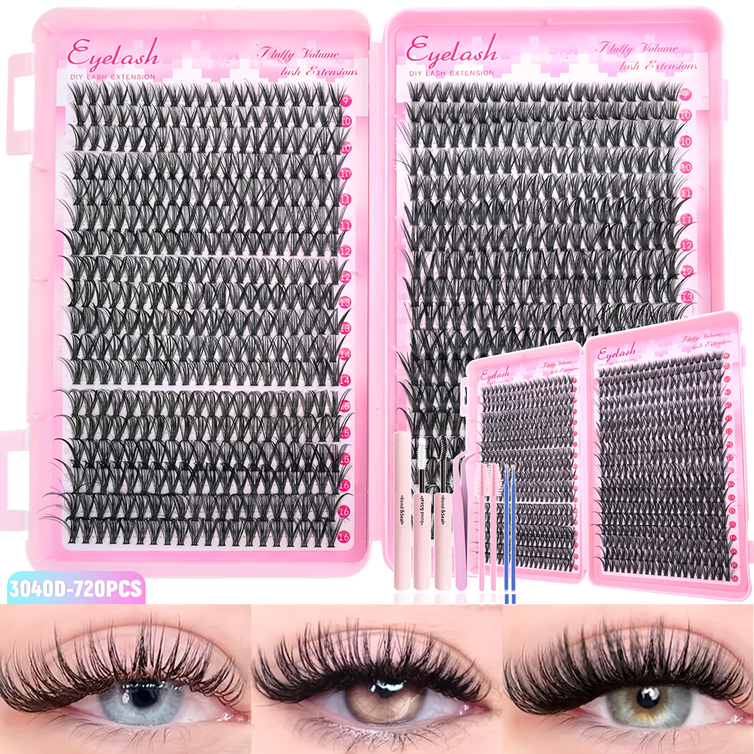 Conjunto de Extensão de Cílios DIY 720PCS 30D40D/40D80D/80D100D Estilos Natural/Denso/Extra Grosso, Comprimentos Mistos