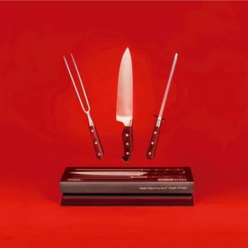 KIT CHURRASCO 3 PEÇAS MOR PRODUTO ORIGNAL A PRONTA ENTREGA O Conjunto de Faca, Garfo e Chaira da linha Steel da Mor tem design sofisticado e atraente. Desenvolvidos com cabo em madeira tratada e corpo em aço inoxidável, materiais que proporcionam maior resistência, leveza e durabilidade, são perfeitos para auxiliar os chefs mais exigentes. Embalado em uma caixa de muito bom gosto, esse conjunto é uma excelente opção para presentear os amigos.Excelente presente! A caixa tem fechamento com imã! MATERIAIS Madeira e Aço Inox MEDIDAS01 Faca - 33cm x 4,5cm x 2cm01 Garfo - 31cm x 2,5cm x 1,5cm01 Chaira - 32,5cm x 3,5cm x 1,5cm01 Caixa - 36,5cm x 17,4cm x 3cm Peso total: 540g Itens Inclusos: 01 Faca 01 Garfo 01 Chaira