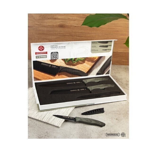 | Conjunto De Facas 3pç Pretas - Mundial (VX9900-3) este produto | R$ 154,00 | — | 5.0/5 | 1 |