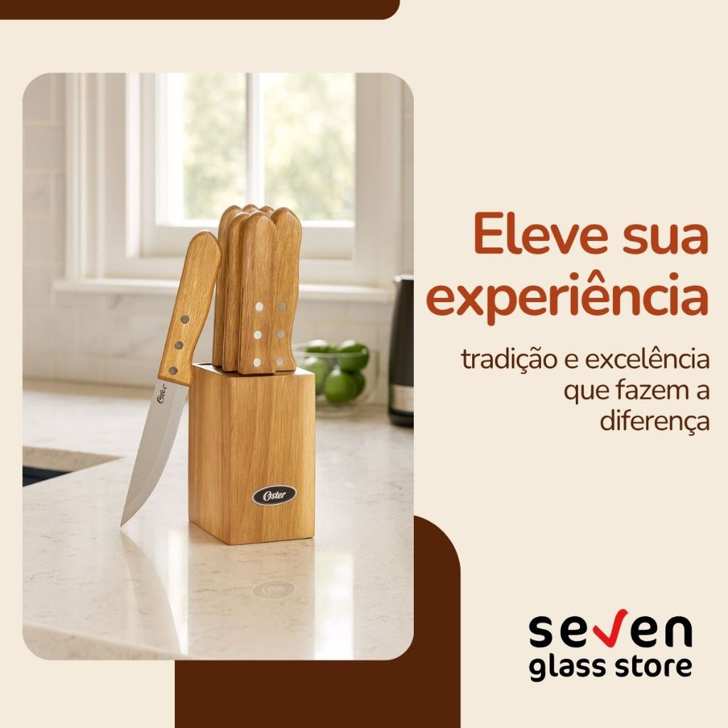 Conjunto De Facas Oster Para Churrasco Aço Inox 7 Peças Cepo Madeira Hersden