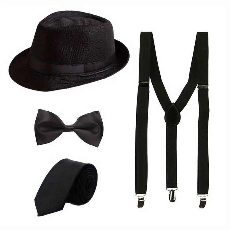 Conjunto de Fantasia Masculina Inspirado em Gotsby - Inclui Chapéu, Suspensórios Y-Back, Gravata Borboleta