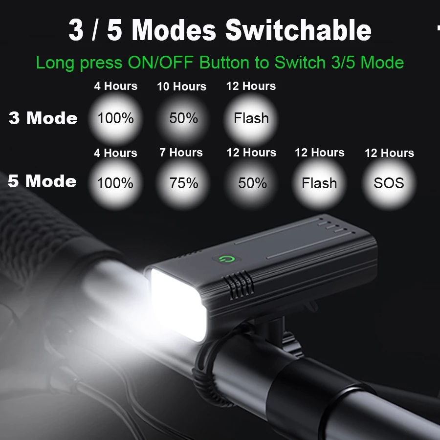 Conjunto de farol de bicicleta recarregável de 1800 lúmens USB 5200mAh com luz frontal de ciclismo de banco de energia