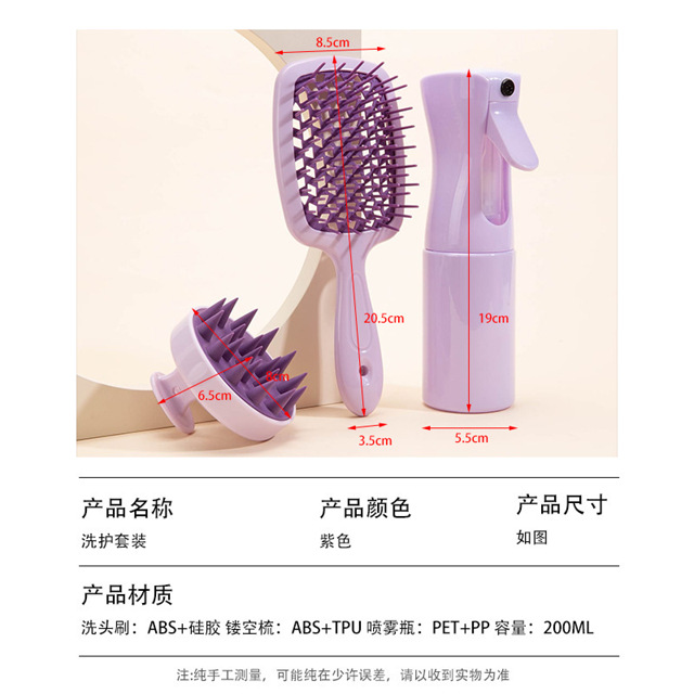 Conjunto De Ferramentas Para Cabelo De 4 Peças , Pente De Massagem Couro Cabeludo , Shampoo , Escova , Spray , Acessório